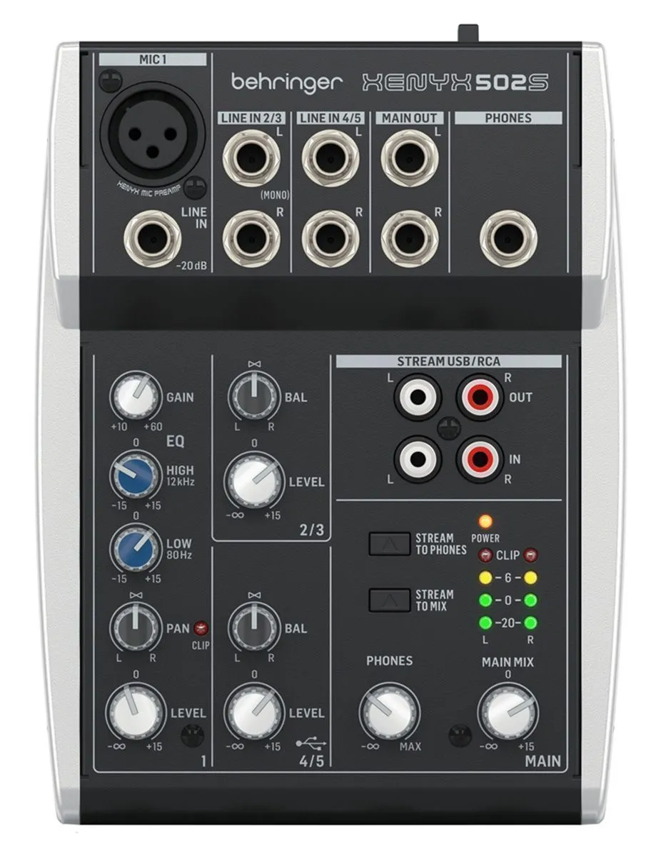 XENYX 502S является отличным партнером для любого динамического микрофона, улучшая ваш стриминг, подкастинг или запись с помощью микрофонного входа,  одновременно обеспечивая простое и супер-удобное управление кончиками пальцев.