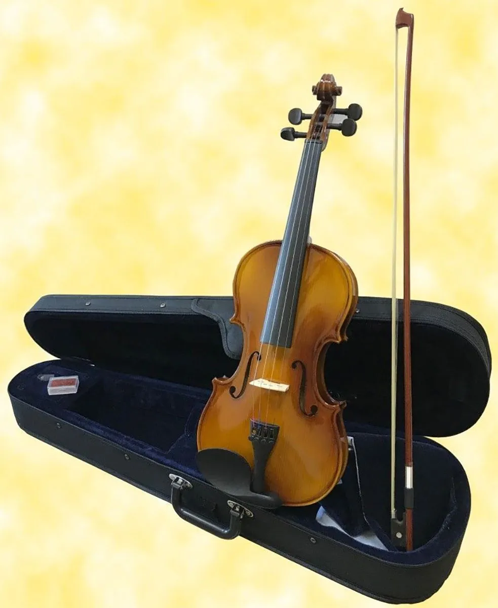 Brahner BV-412 3/4 Скрипка в комплекте: кейс, смычок, канифоль. Верхняя дека – резонансная ель, нижняя дека и обечайка – клен, гриф – клен, накладка на грифе – черные, колки и подбородник – черные, струнодержатель – метал. с 4-мя машинками, подставка– клен, покрытие - лак.