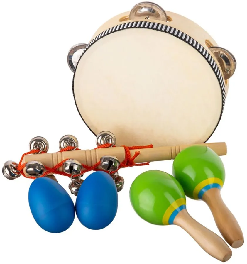 4 предмета в чехле (бубен, маракасы-яйцо, маракасы на ручке, колокольчики на ручке).