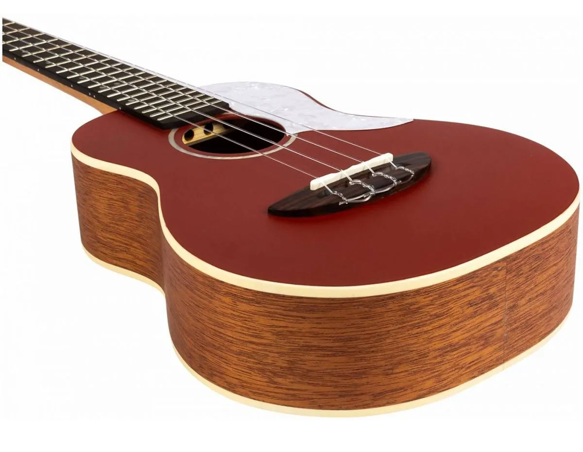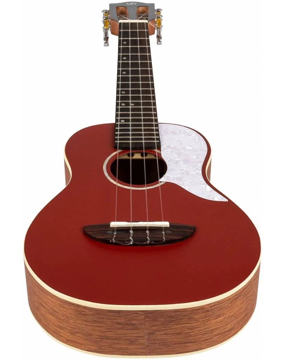 Верхняя дека Flight IRIS Concert RD сделана из массива ели и выкрашена в красный цвет, обеспечивая звук, который отлично подходит для живых выступлений и студийных записей. Верхняя дека из массива ели усилена корпусом и обечайкой из ламината красного дерева, создавая не только яркое и звонкое звучание, но и добавляя в него теплоту и округлость.