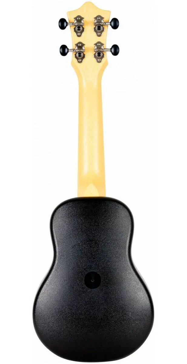 Дека из Липы. Корпус не полностью композитный. Резонирующая верхняя дека из древесины делает звучание более выразительным и мощным, по сравнению с полностью пластиковыми инструментами.