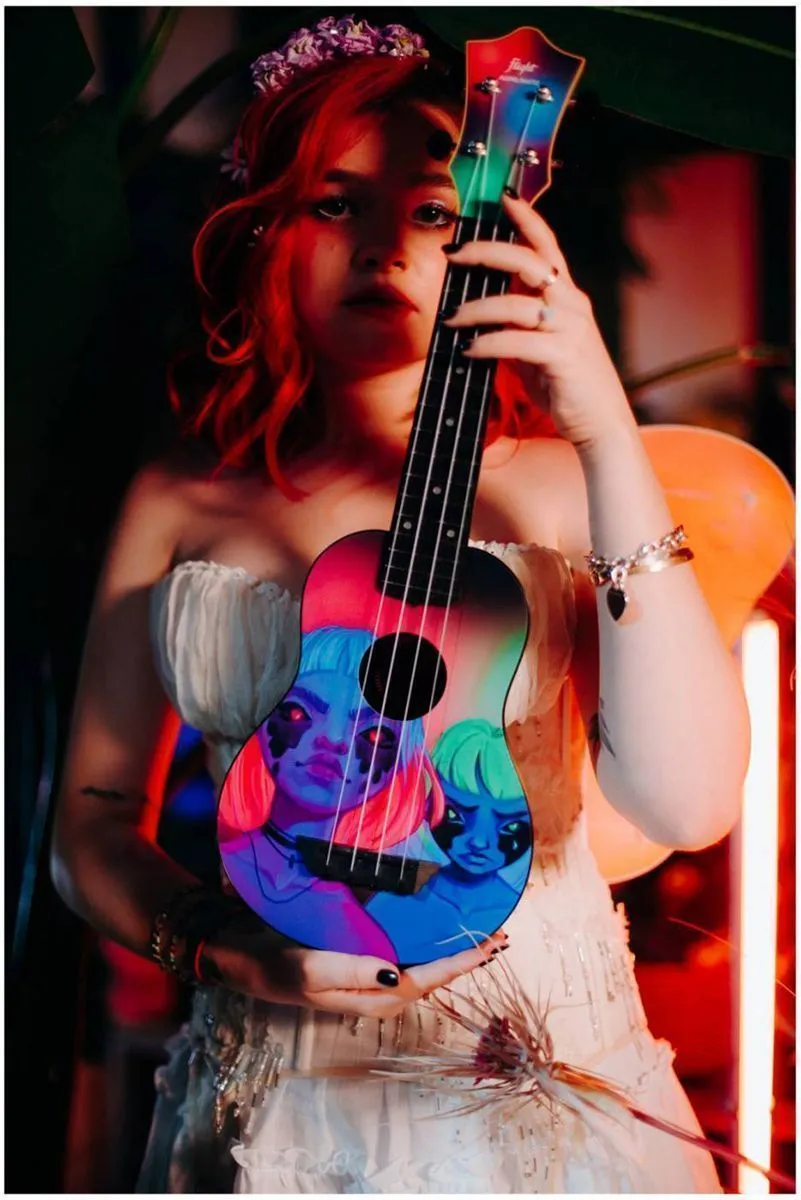 Вторая именная укулеле в России от Алены Швец - укулеле Flight TUS Alyona Shvetz Toxic – посвящена свежим альбомам Алены Швец «Яд» и «Противоядие», выпущенным в марте 2022г. Верхняя дека укулеле повторяет дизайн обложки обоих альбомов.