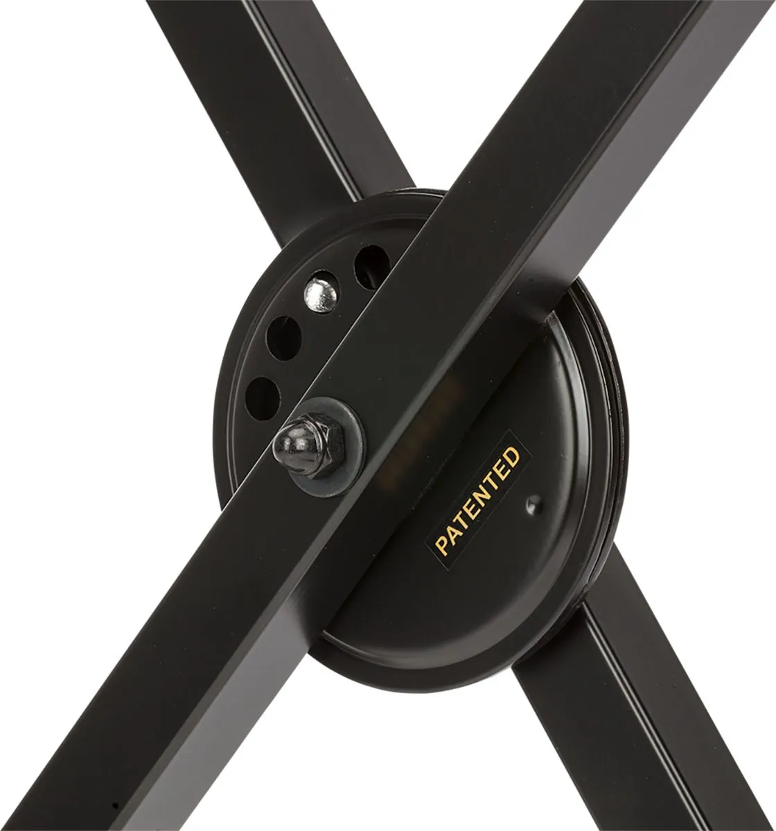 Стойка для клавишных инструментов с одинарными ножками, «Х»-образный дизайн. Имеет пять различных настроек высоты благодаря новой патентованной системе EZ-Lok. Система EZ-Lok делает незаметными процессы установки, настройки и сборки стойки.