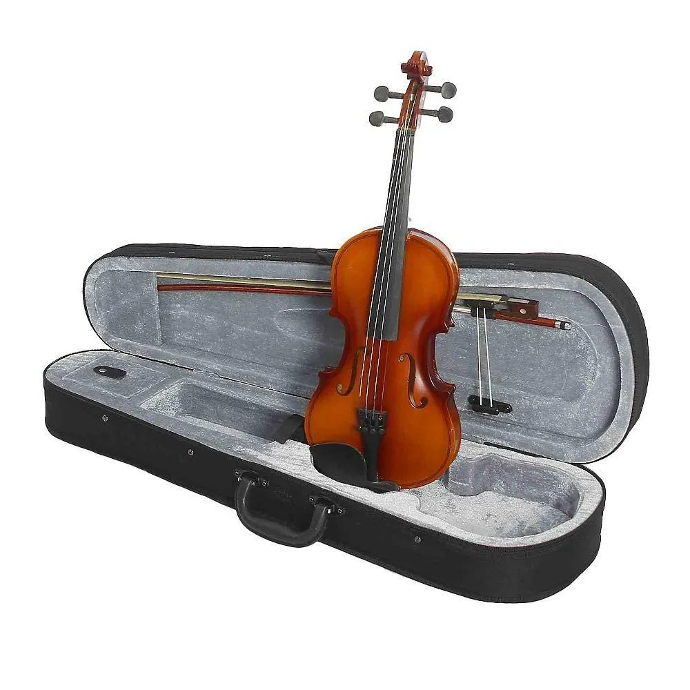 Mavis HV1410 1/2 Скрипка в комплекте: кейс, смычок, канифоль. Верхняя дека – ель. Нижняя дека и обечайка – клен. Гриф – клен, накладка на грифе – черная, колки и подбородник – черные. Струнодержатель – метал. с 4-мя машинками, подставка – клен, покрытие - лак.