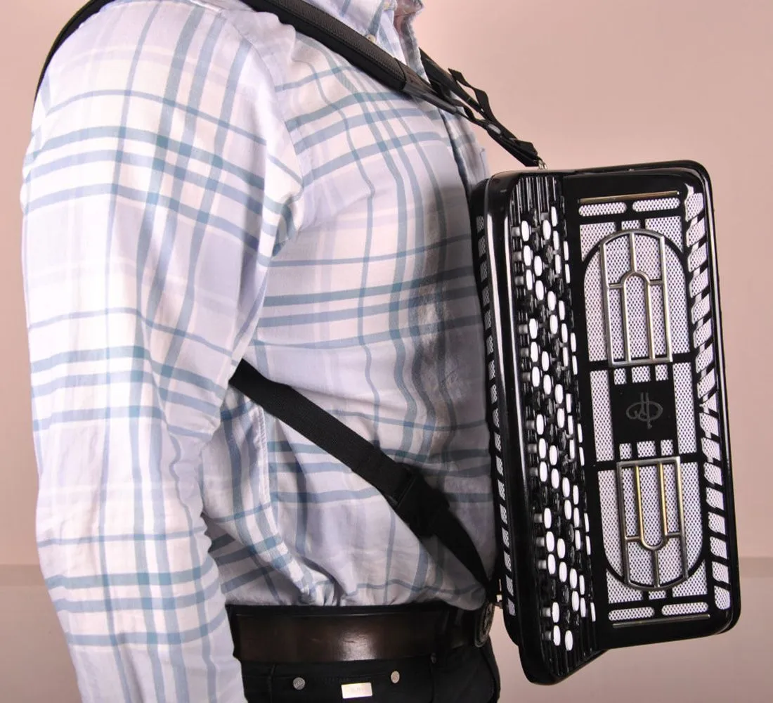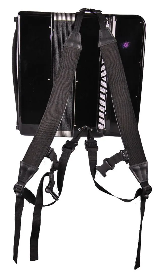 В комплекте ремней для баяна и аккордеона применяется фурнитура, используемая для производства снаряжения альпинистов. Данная фурнитура легко соединяется с инструментом при помощи удобных крепления в верхней части, и двух быстросъемных замков в нижней.