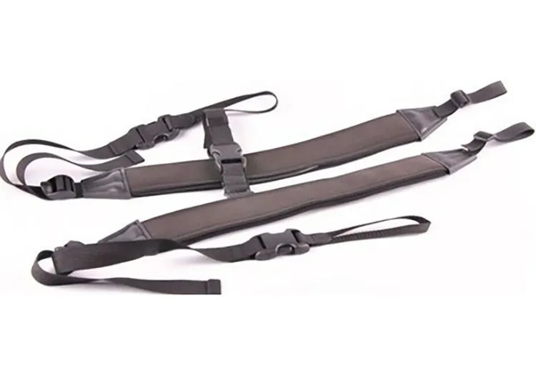 Материал каучук + дублированный неопрен уменьшает нагрузку на плечи. Ремни обеспечивают комфорт во время игры, идеально подходят для тяжелых инструментов. На ремни установлена фурнитура, используемая альпинистами. Простое и надежное крепление за инструмент.