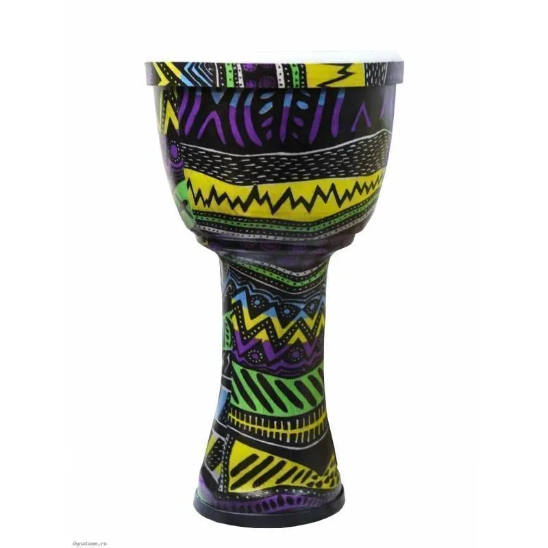 Думбек размера 8' x 15' сделан из синтетического волокна и имеет мембрану из пластика, в связи с чем он имеет легкий вес и позволяет использовать барабан на улице, не боясь дождя и даже снега. Таким образом, этот думбек – идеальный походный вариант обладающий полным пространным звуком и легкостью конструкции. А яркий насыщенный цветом рисунок на корпусе, придает инструменту особый вид.