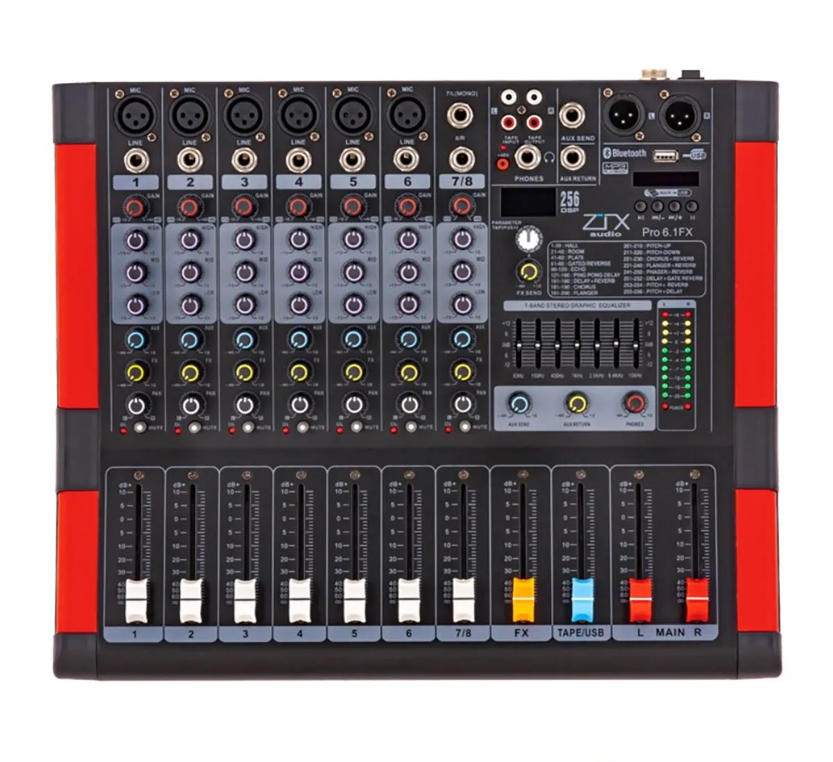 Профессиональная серия микшерных пультов ZTX Audio серии PRO выполнена на фейдерах. 256-канальный DSP-процессор и 7-полосный графический эквалайзер позволяют смикшировать и добиться качественного звучания от звукового оборудования любого уровня. В помощь при работе со звуком добавлены MP3, SD, USB-интерфейс для подключения к компьютеру и Bluetooth. Все микшерные пульты ZTX Audio серии PRO открывают большие возможности для управления звуком и имеют цену, которая приятно удивит своих покупателей.